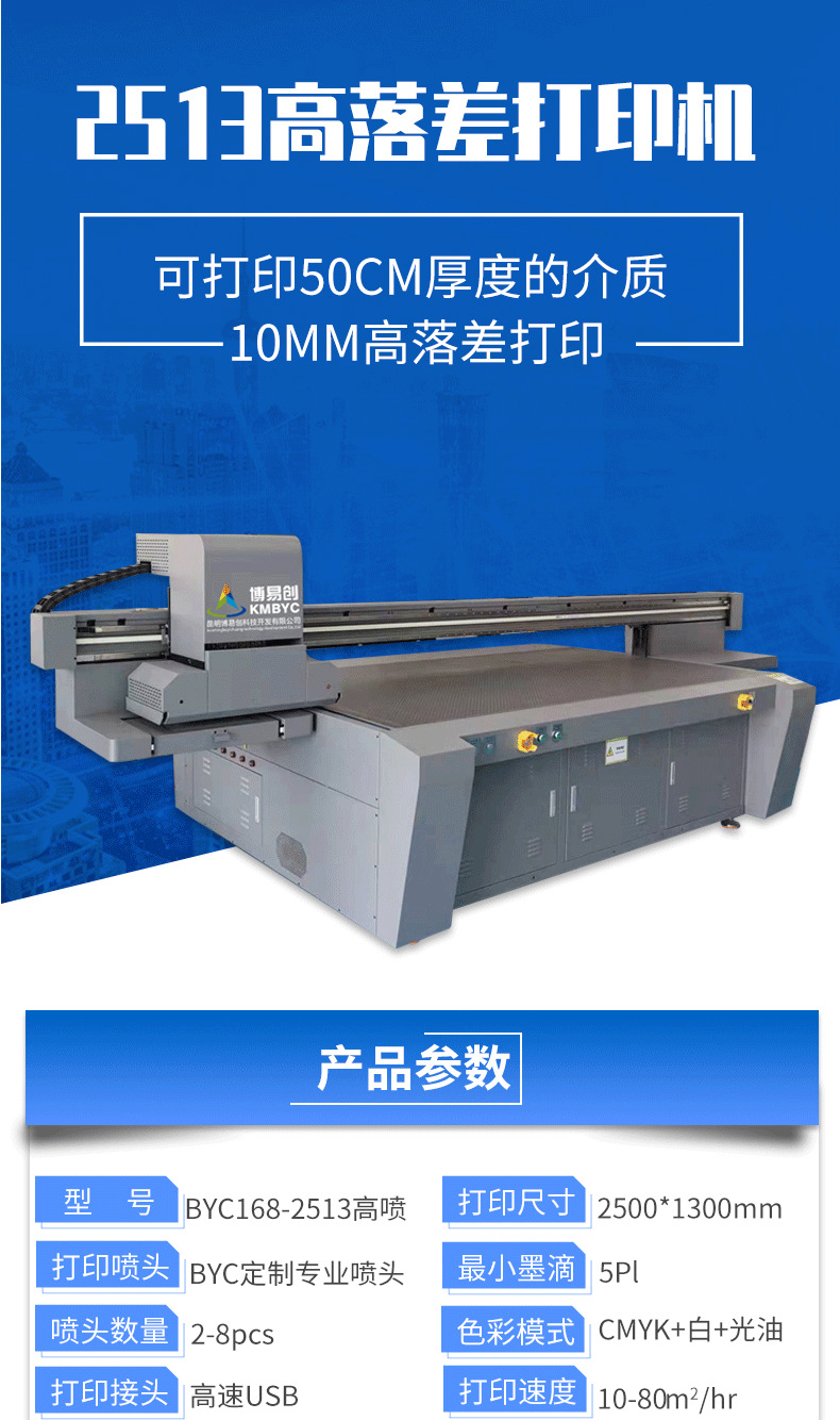 博易創BYC168-2513高噴機高落差uv平板打印機 磁懸浮G6玩具曲面異形UV打印機